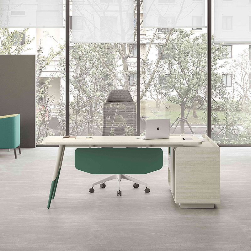 1、基材:符合E0級(jí)標(biāo)準(zhǔn)的MFC板; 2、主臺(tái)面直紋灰橡,同色封邊; 3、副柜前、后側(cè)板、背板為直紋灰橡; 4、擋板和活動(dòng)木框?yàn)殚蠙炀G色,其余子午灰 色;5、五金臺(tái)腳子午灰+橄欖綠; 6、班臺(tái)可左右互換。